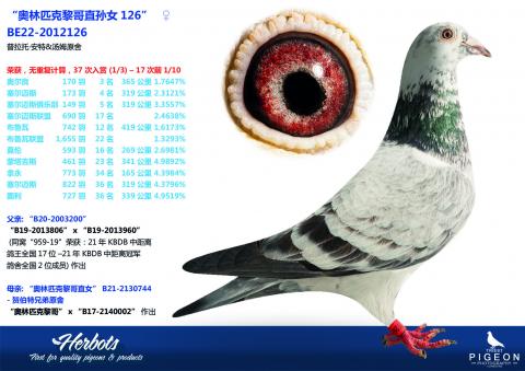 荣获塞尔迈斯:  126羽2名 – 292羽5名 –