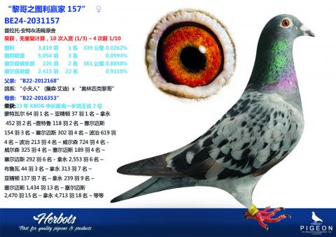 还荣获: 图利 329羽12名 – 莫伦 593羽13名 –