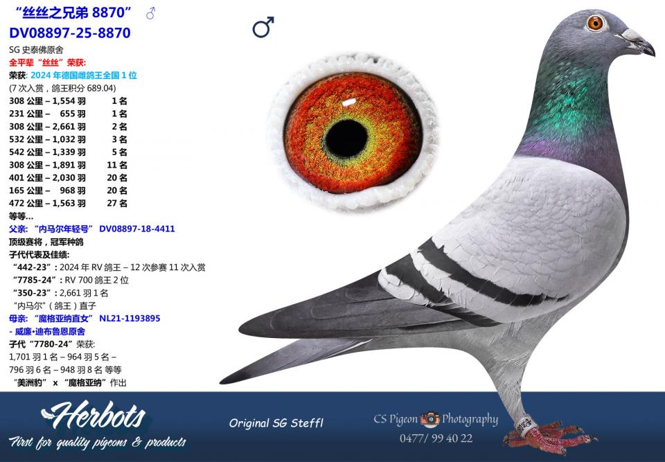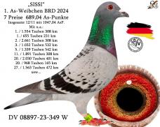 荣获: 2024年德国雌鸽王全国1位