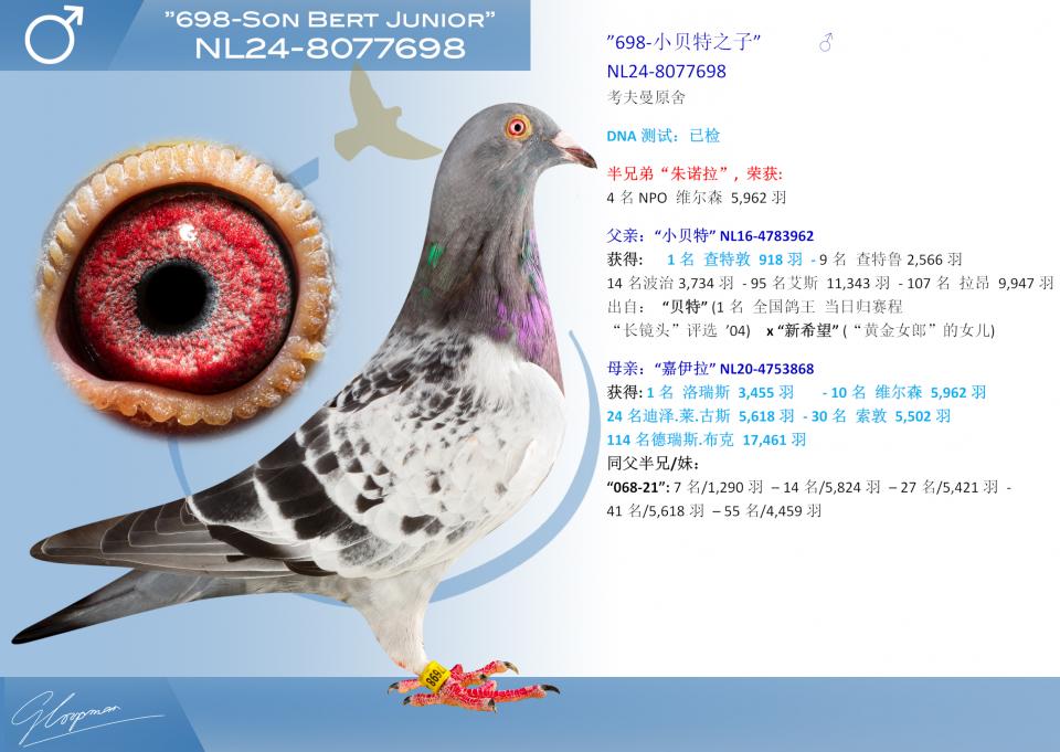 “贝特” (1名 全国鸽王 当日归赛程“长镜头”评选 ’04) x “新希望” (“黄金女郎”的女儿)