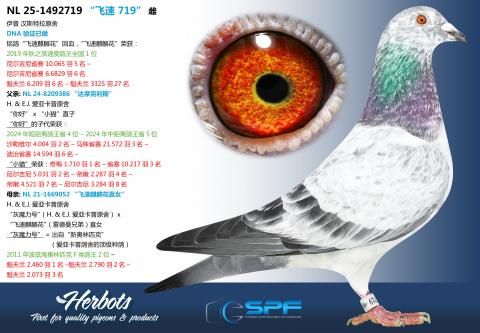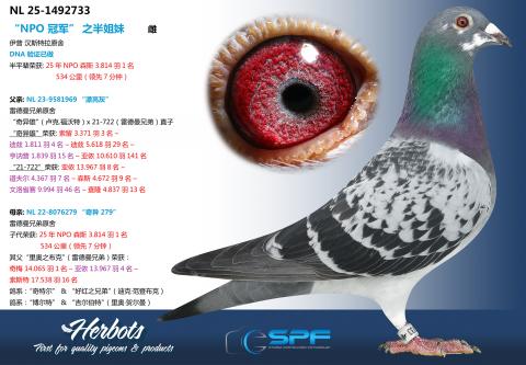 这羽卓越之鸽获得:荷兰中距离鸽王全国1位。