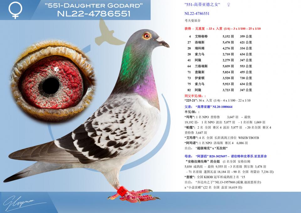 “齐达内之子” NL13-1957868 (威廉.迪波恩原舍)x “小盖雷雌” (22名 全国 盖雷16,619羽)