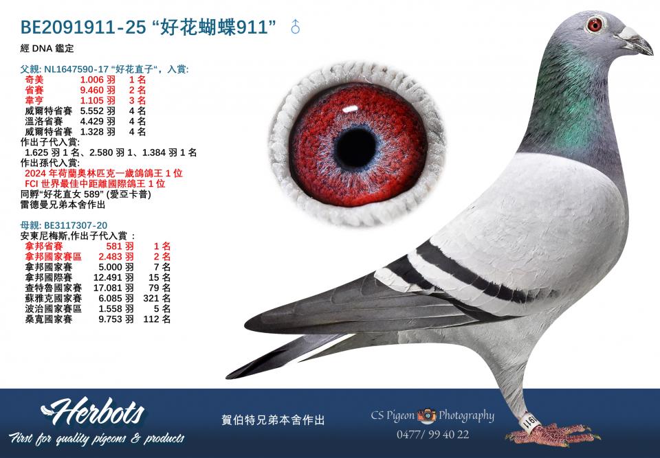2024年荷蘭奧林匹克一歲鴿鴿王1位